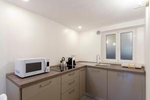 Klimatyzowany apartament posiada jedną sypialnię oraz łazienkę wyposażoną pod prysznicem i bidetem. Wewnątrz znajdują się dwa łóżka oraz w pełni wyposażony aneks kuchenny obejmujący lodówkę, mikrofalówkę, ekspres do kawy i naczynia kuchenne. Dodatkowo dostępna jest rozkładana sofa, szafa lub garderoba, ogrzewanie, żelazko, pralka i suszarka na ubrania oraz indywidualnie sterowana klimatyzacja.