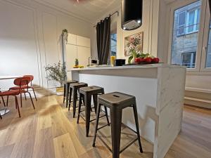 Klimatyzowany apartament dysponuje dwoma oddzielnymi sypialniami, salonem wyposażonym w rozkładaną sofę oraz dwiema łazienkami z bidetami, suszarkami do włosów i bezpłatnymi kosmetykami. Goście mogą przygotowywać posiłki w pełni wyposażonej kuchni zawierającej piekarnik, płytę grzewczą, mikrofalówkę, lodówkę, zmywarkę i ekspres do kawy wraz z niezbędnym wyposażeniem kuchennym. Apartament zapewnia również pościel, ręczniki oraz szafę na ubrania, na życzenie dostępny jest stojak do suszenia ubrań oraz łóżeczko dziecięce.